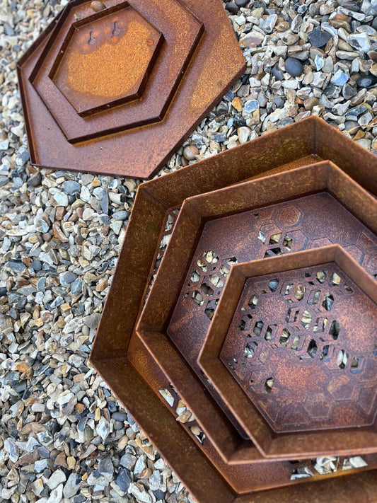 Corten Steel Honeycomb Hexagon Bug Insect Hotel 200mm, 300mm , 400mm